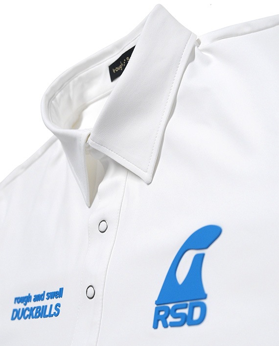 シリコンプリントと刺繍をバランスよく配し、レギュラーカラーとリングドットボタンで仕上げたツアースタイルポロです