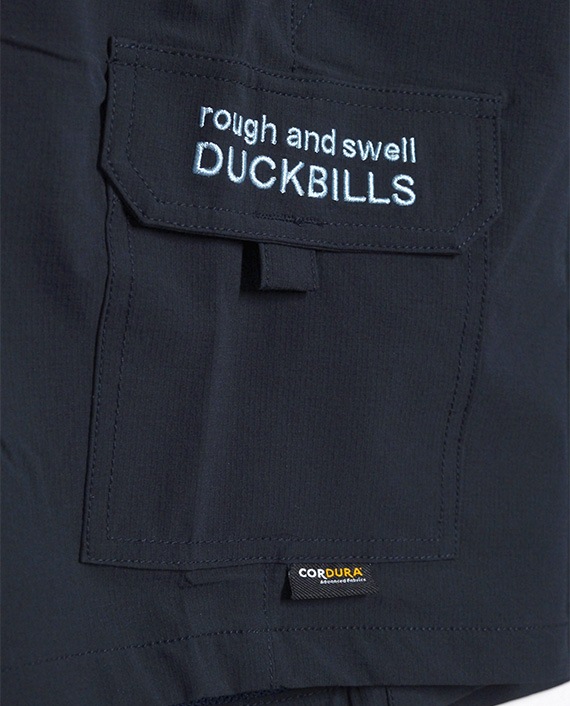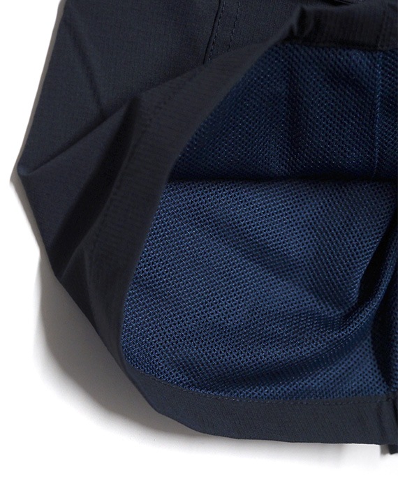 裏地はメッシュ仕様になっていて濡れてもすぐに乾いちゃいます!マチ無しのカーゴポケットを右身のみに配し、ロゴマークと文字を刺繍でバランス良くデザインしました