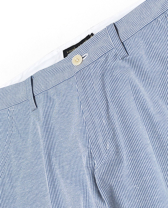 ジャージ組織のコットンリネンサッカーは抜群のストレッチ性とフィット感に加え、サラッとした肌触りで心地よいはき心地