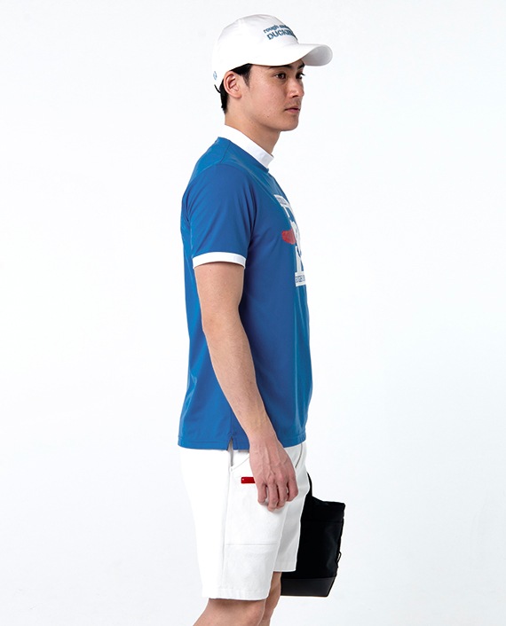 RINGER TEE STYLEに仕上げたモックネックシャツを、コースやタウンでお楽しみください