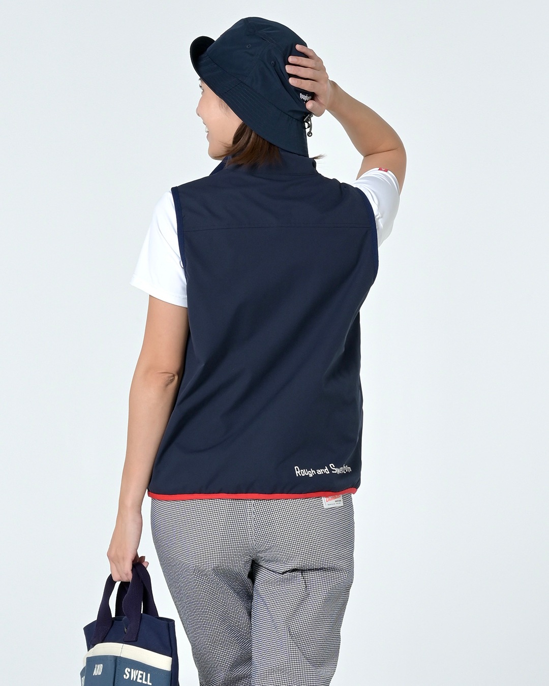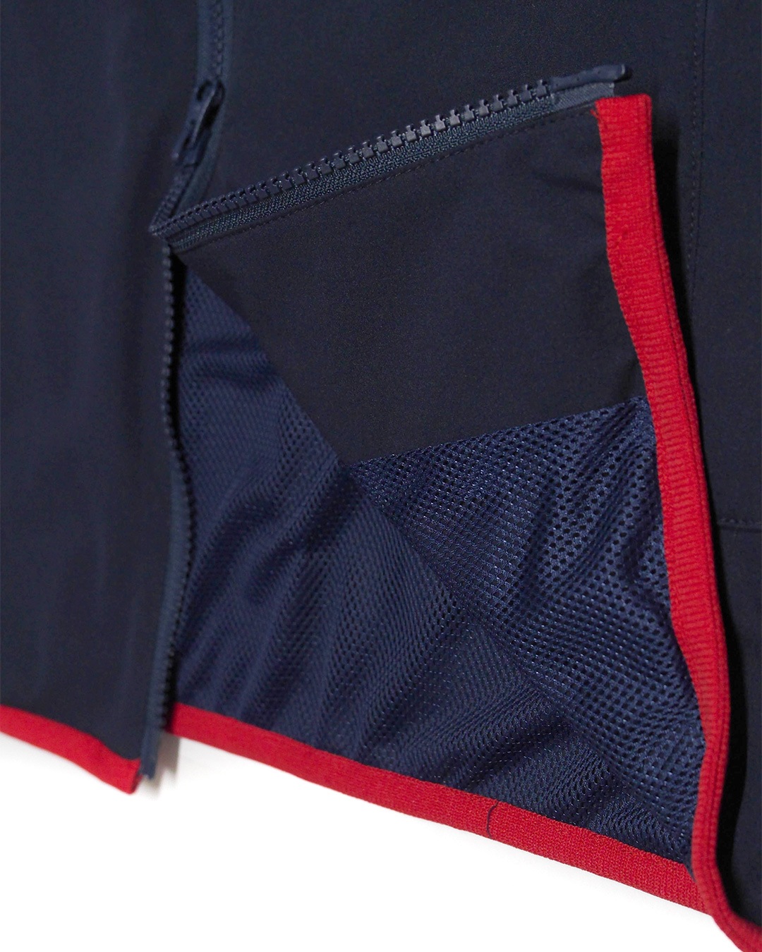 薄手のストレッチタフタ生地を使用したフルジップベスト