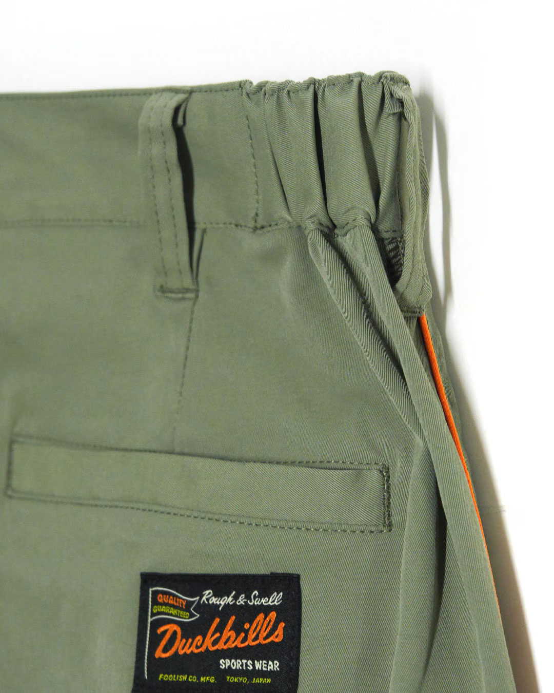 ウエスト両脇をゴムシャーリング仕様にし、お腹回りもラクチン