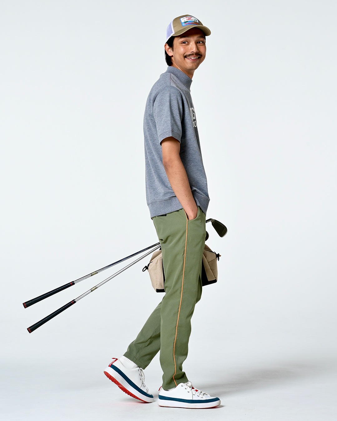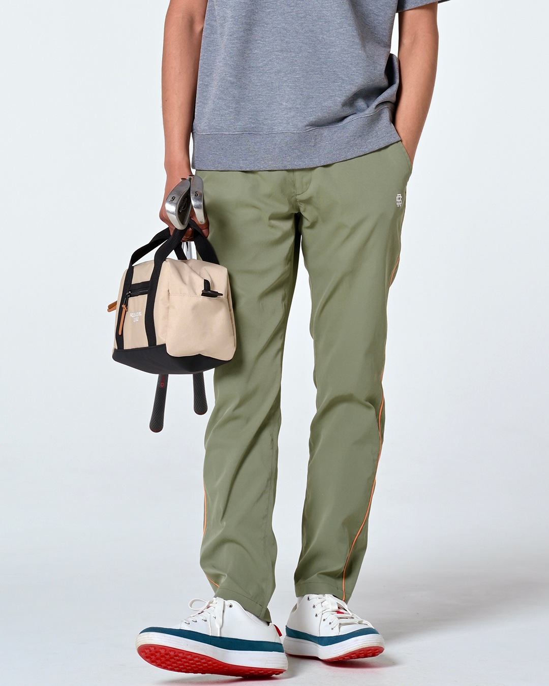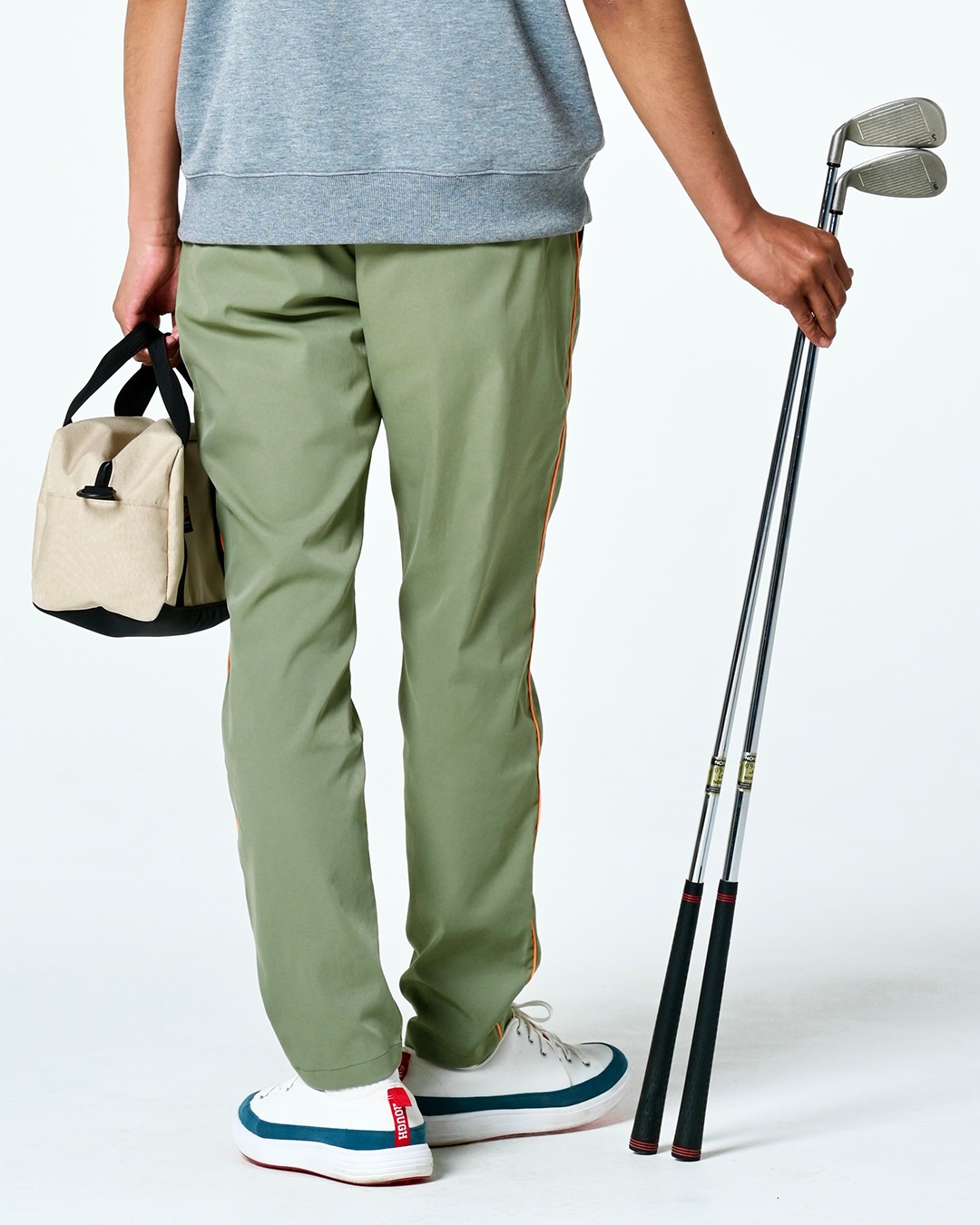 サイドに配したコードパイピングが効いた「CHELSEA PANTS」