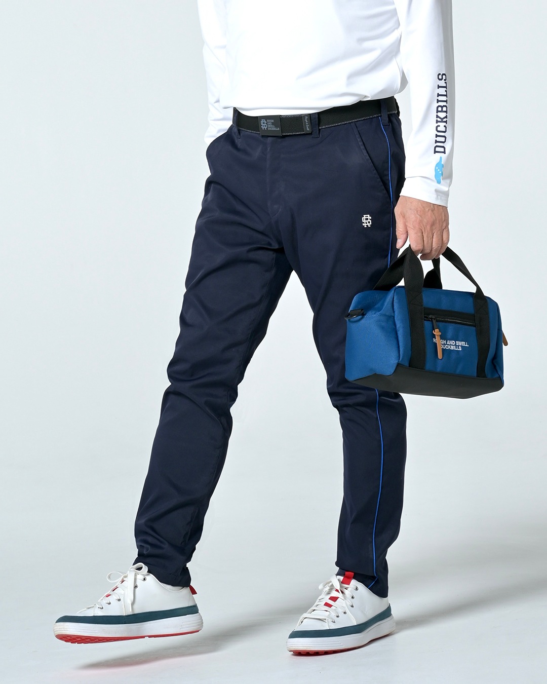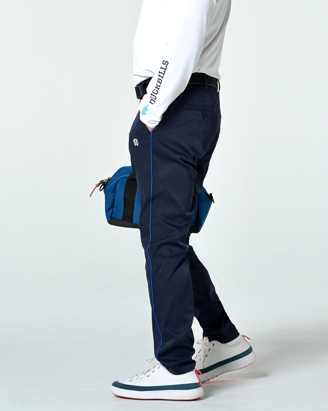 サイドに配したコードパイピングが効いた「CHELSEA PANTS」